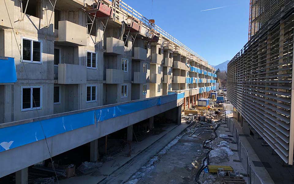 Ambitious goals and an ambitious schedule: The aim is that ‘The Resort’ should be running by the end of 2021. With this goal in mind work on the building site is forging ahead. The first crane is already in place and in use, work on the foundations is making rapid progress.