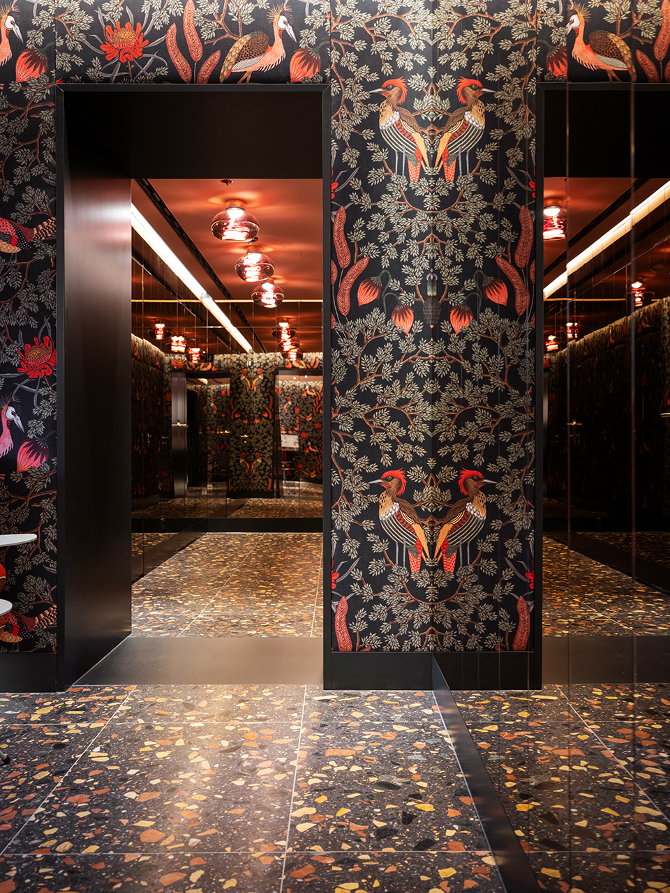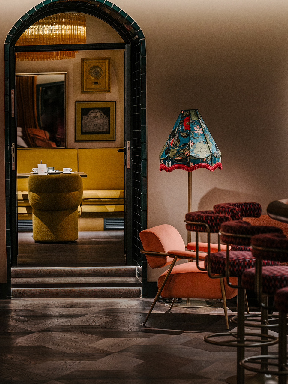 In this way, the so-called Belétage not only embraces historical growth but also intensifies and intertwines history with contemporary use by incorporating the existing structure of the rooms and their design. Specially designed tile and fabric patterns, color schemes, and the design of individual areas emphasize the new function of the Belétage in the old Hotel Post.A new entrance situation was also created. In keeping the old building structure, attention was given to a central main entrance, guiding arriving guests into the old “Poststube” or the newly designed reception area.